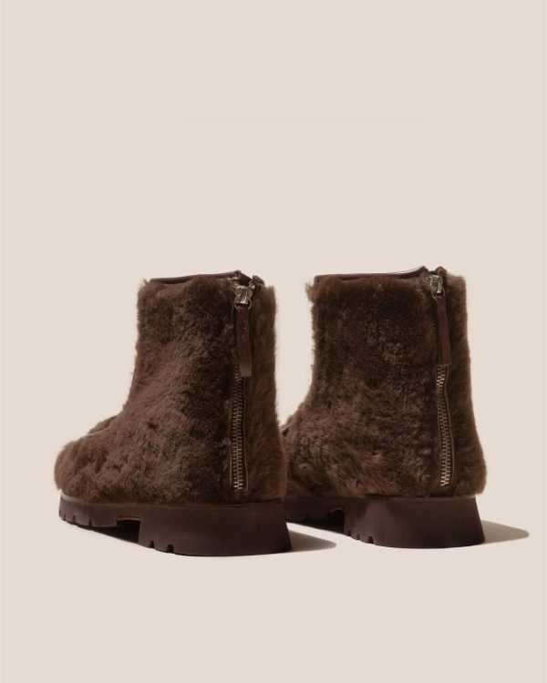 Back zip ankle boot loafer crafted in Spanish double-faced sheepskin shearling and calf leather trims, built on a blown rubber tread sole. The upper has been hand sewn using the traditional moccasin construction. Made in Spain by uniquely talented artisans, celebrating excellence in craftsmanship.