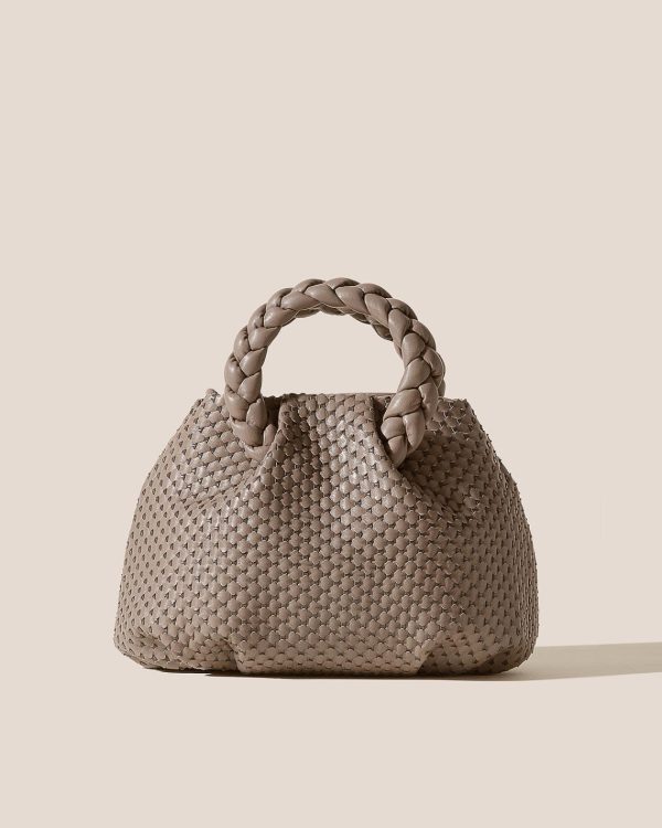 Medium leather tote with braided leather handles, crafted in interlaced calf leather lined with organic cotton canvas. Made in Spain by uniquely talented artisans, celebrating excellence in craftsmanship.
