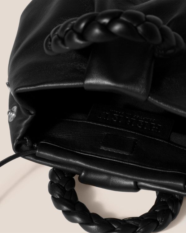 Small leather tote with braided leather handles, crafted in supple lambskin lined with organic cotton canvas. Made in Spain by uniquely talented artisans, celebrating excellence in craftsmanship.