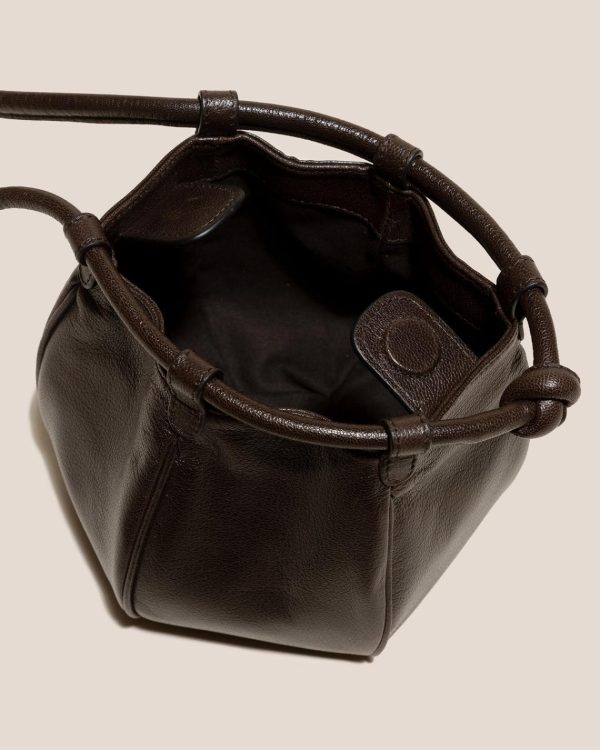 Balloon-shaped drawstring shoulder/tote bag crafted in supple shiny lambskin and lined with organic cotton canvas. It can be worn as a shoulder bag by pulling the strap to one side, or as a tote by pulling the straps evenly to both sides. Handmade in Spain by uniquely talented artisans, celebrating excellence in crafts