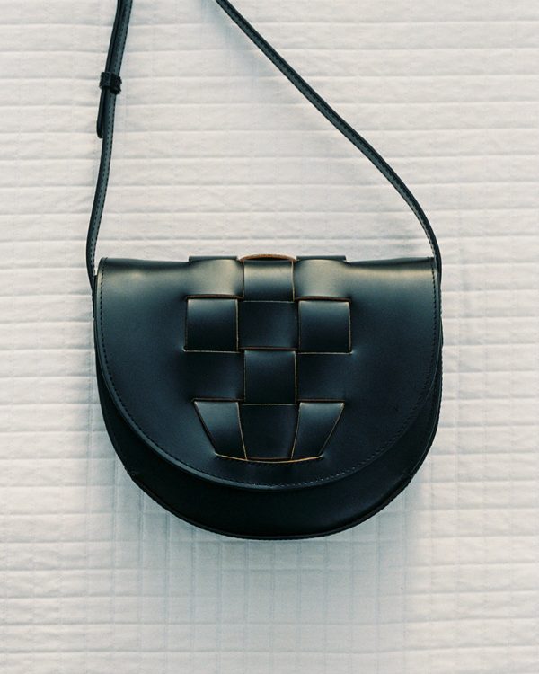 Satchel bag with interwoven front detail, crafted in Spanish leather and lined with calf suede. Made in Spain by uniquely talented artisans, celebrating excellence in craftsmanship.