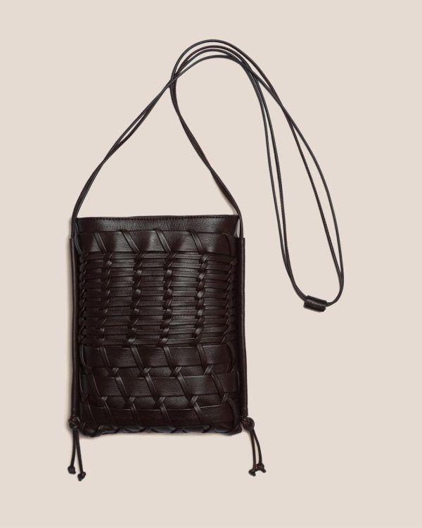 Flat square crossbody bag crafted in soft calf leather, with a handwoven front pocket. Made in Spain by uniquely talented artisans, celebrating excellence in craftsmanship.