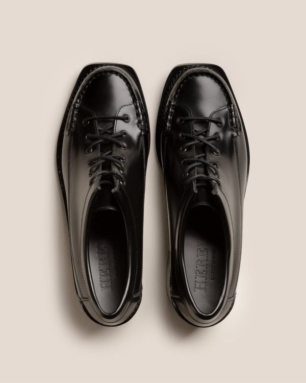 Heeled lace-to-toe moccasin crafted in structured calf leather. The outsole is stitched to the upper for extra flexibility and durability. Made in Spain by uniquely talented artisans, celebrating excellence in craftsmanship.
