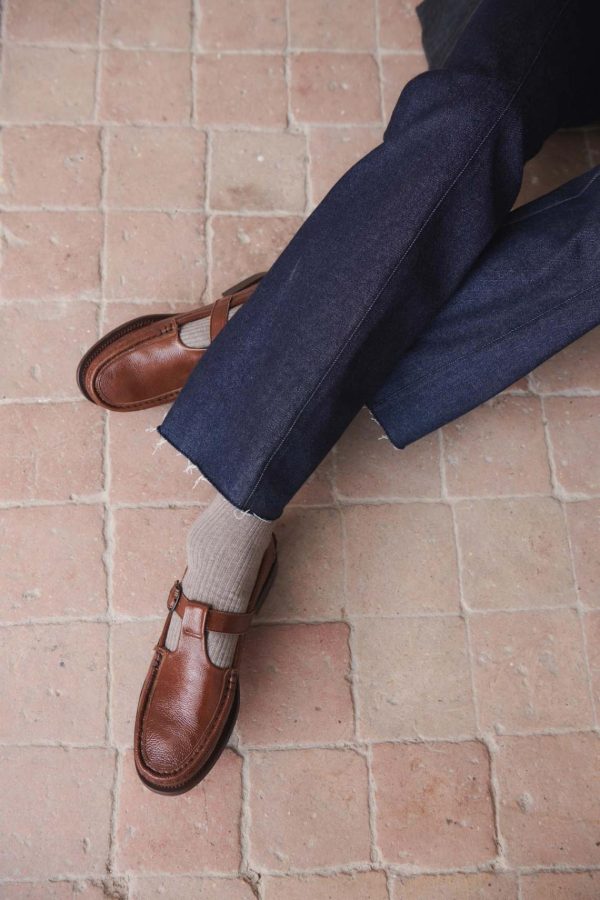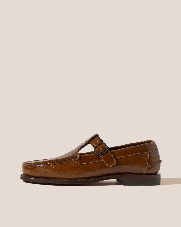 T-bar loafer crafted in Italian crinkled glossy lambskin. Hand-sewn using the traditional moccasin construction. The outsole is stitched to the upper for extra durability and flexibility. Made in Spain by uniquely talented artisans, celebrating excellence in craftsmanship.