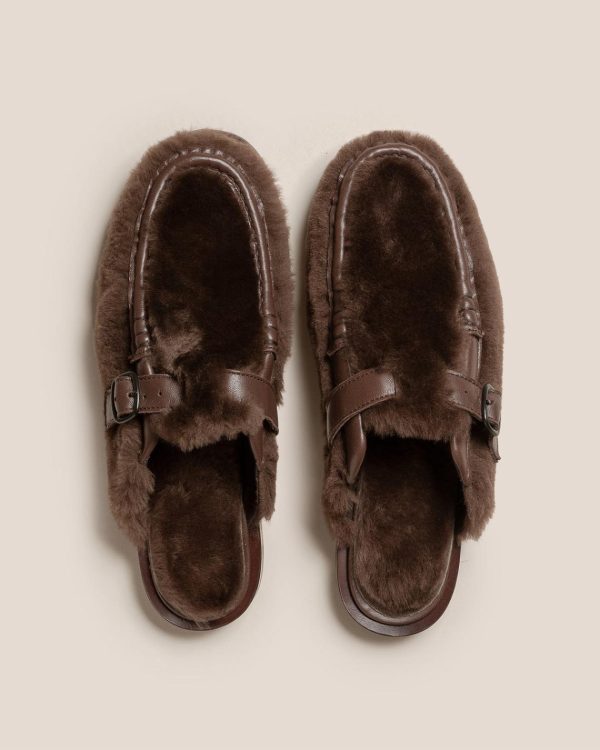 Buckle-strap clog loafer crafted in Spanish sheepskin shearling with smooth leather trims and calf leather lining. Hand-sewn using the traditional moccasin construction. The outsole is stitched to the upper for extra flexibility and durability. Made in Spain by uniquely talented artisans, celebrating excellence in craf