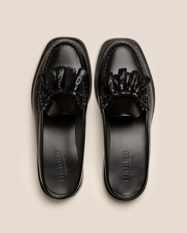 Tasseled mule loafer crafted in Spanish full grain leather. The upper has been hand sewn using the traditional moccasin construction. The outsole is stitched to the upper for extra flexibility and durability.Handmade in Spain by uniquely talented artisans, celebrating excellence in craftsmanship.