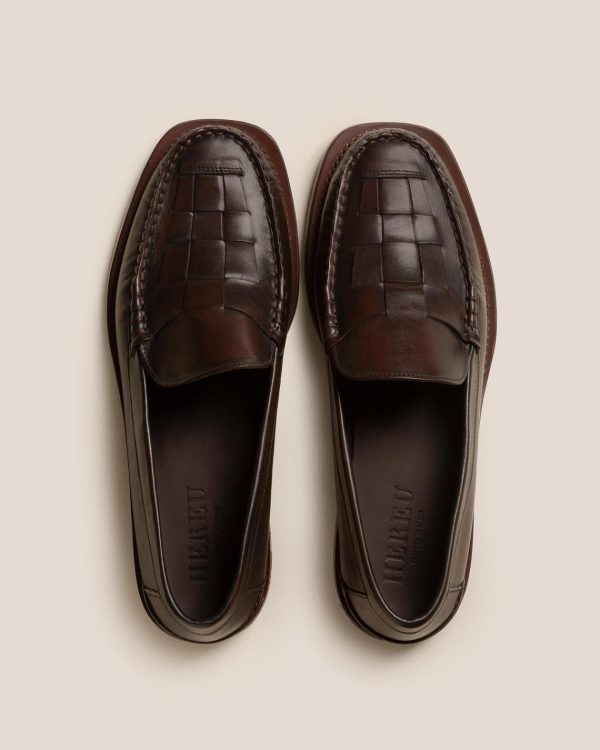 Slip-on loafer with interwoven front detail, crafted in duotone brushed calf leather. Hand sewn using the traditional moccasin construction. The outsole is stitched to the upper for extra flexibility and durability. Made in Spain by uniquely talented artisans, with local materials, celebrating excellence in craftsmansh
