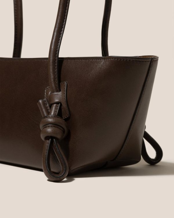 Baguette shoulder bag with knotted handle detail, crafted in polished Italian calf leather and lined with calf suede. Handmade in Spain by uniquely talented artisans, celebrating excellence in craftsmanship.