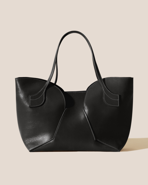Large tulip-shaped tote, crafted in grainy calf leather. Made in Spain by uniquely talented artisans, celebrating excellence in craftsmanship.