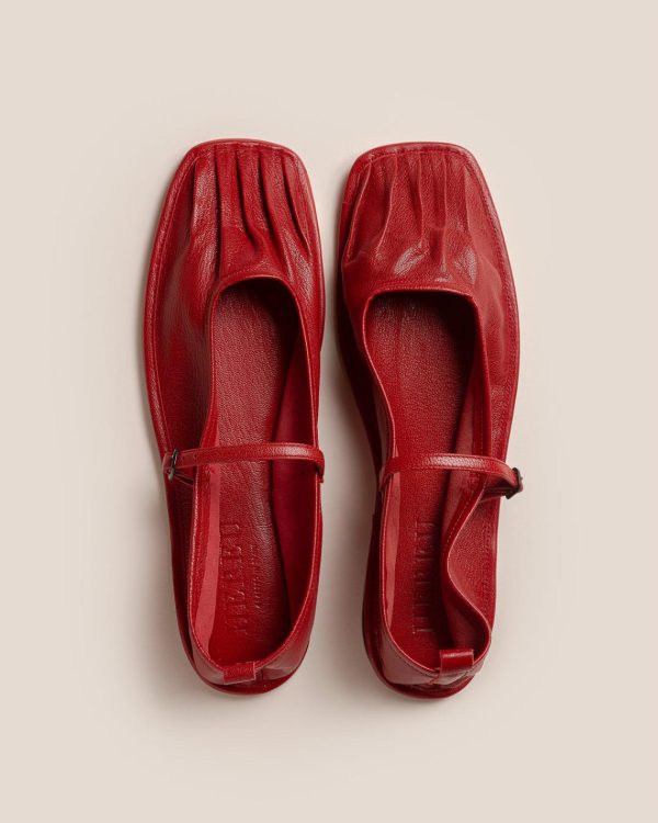 Pleated toe flat Mary Jane crafted in Italian supple shiny lambskin. Made in Spain by uniquely talented artisans, celebrating excellence in craftsmanship.