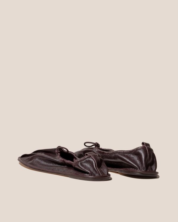 Square-toe flat pump with pleated toe detail, crafted in supple shiny lambskin.Handmade in Spain by uniquely talented artisans, celebrating excellence in craftsmanship.