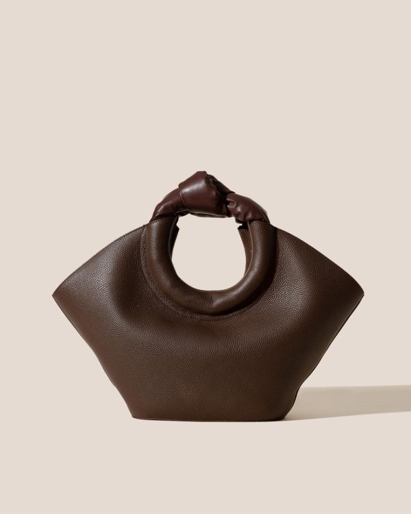 Knotted-handle basket tote crafted in Spanish grainy calf leather with calf leather lining. Made in Spain, by local artisans, celebrating excellence in craftsmanship.